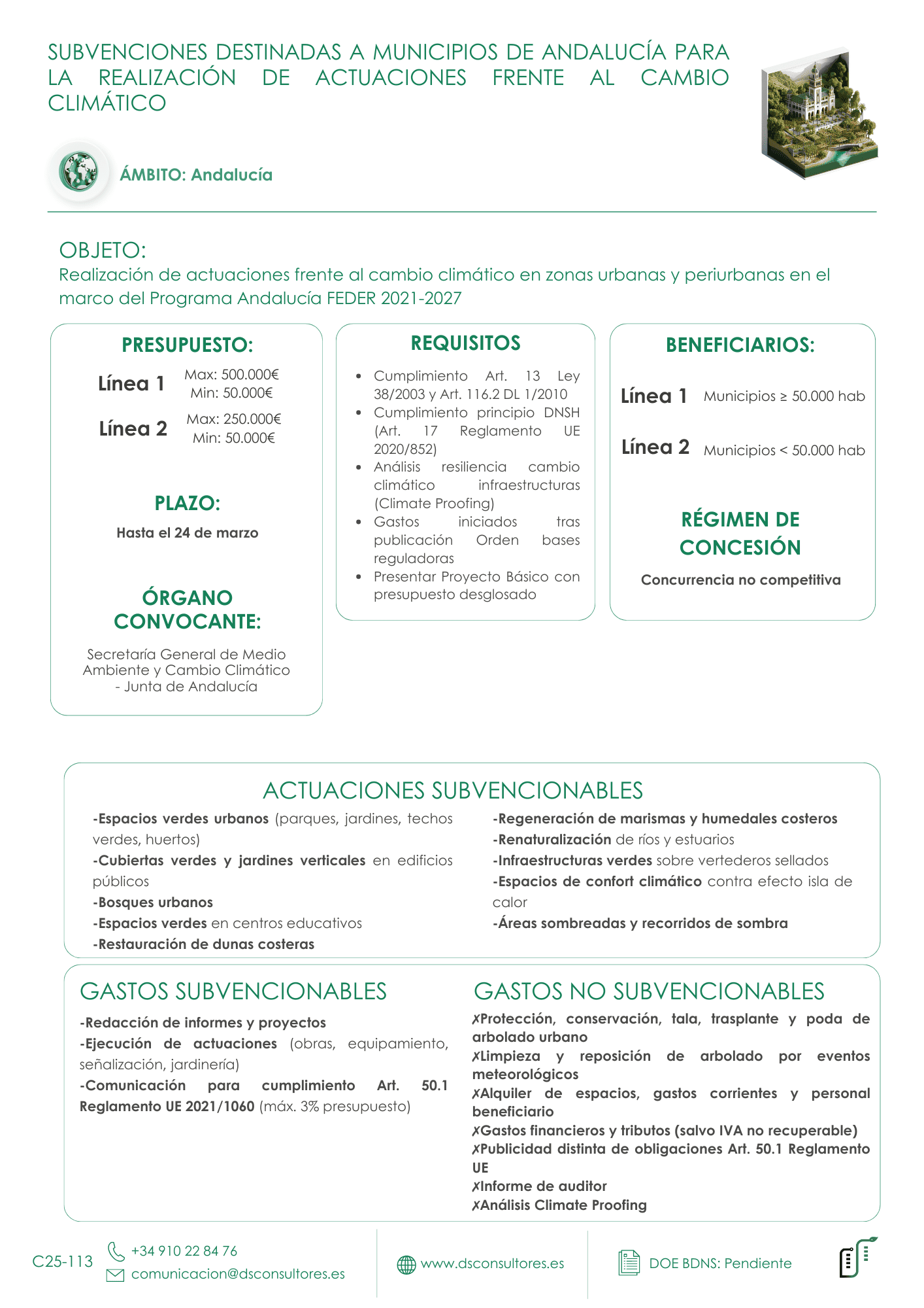 ¿Vemos la viabilidad de tu solicitud de la subvención destinada a municipios de Andalucía para la realización de actuaciones frente al cambio climático?